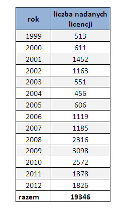 W latach 1999-2012 licencję pośrednika w obrocie nieruchomościami uzyskało 19346 osób. Tylko w ciągu minionego 2012 roku grono pośredników zwiększyło się o ponad 10%; w jego szeregi wstąpiło 1826 osób. Jednak liczba ta była daleka od rekordowej – zanotowanej w 2009 roku. Wówczas, jeszcze na fali boomu nieruchomościowego, licencję uzyskało aż 3098 osób. W kolejnym, 2010 roku Minister Infrastruktury nadał ich już nieco mniej – 2572.