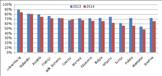 W ciągu minionego roku odsetek Polaków posiadających jakiekolwiek oszczędności gwałtownie się obniżył. Polska zanotowała największy spadek osób z zaskórniakami wśród 13 badanych dla Grupy ING krajów (Austria, Belgia, Czechy, Francja, Hiszpania, Holandia, Luksemburg, Niemcy, Polska, Rumunia, Turcja, Wielka Brytania i Włochy). Z 72 proc. pozostało 56 proc. osób z oszczędnościami. Dorównujemy Turcji i plasujemy się na przedostatnim miejscu tuż przed Rumunią. Tam oszczędności ma nieco mniej niż połowa ankietowanych. Liderzy to Luksemburg, Holandia i Austria, gdzie poduszkę finansową ma od 74 do 84 proc. osób.