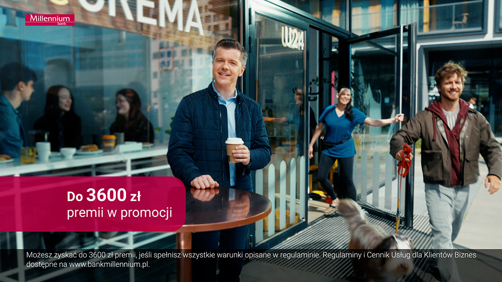 – Mój biznes to dbanie o innych, a Bank Millennium dba o Twoją firmę i oferuje Ci prowadzenie Konta Mój Biznes za 0 zł przez 2 lata w promocji. Czy duży, czy mały każdy klient ma u mnie super obsługę i jeszcze dostanie coś ekstra. A w Banku Millennium możesz dostać w promocji ekstra premię do 3600 zł. Otwórz Konto Mój Biznes i zadbaj o swoją firmę – przekonują w materiale Radosław Kotarski i Maciej Musiał oraz właścicielka salonu piękności dla psów.