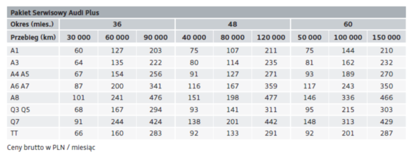 Dodatkowo w pakiecie Audi Plus został uwzględniony serwis klocków i tarcz hamulcowych, sprzęgła oraz piór wycieraczek.