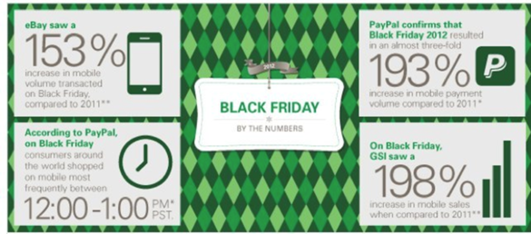 Wygląda na to, że amerykanie z roku na rok coraz chętniej, zamiast przeżywać dantejskie sceny w kolejkach do największych sklepów, wolą kupować nie ruszając się sprzed ekranu komputera. Sprzedaż online w ujęciu całościowym przeżywa gwałtowny wzrost w porównaniu z ubiegłym rokiem. Patrząc na 2011 rok, w 2012 firma PayPal zanotowała 173% wzrost pod względem liczby klientów dokonujących mobilnych zakupów i 193% wzrost ilościowy w płatnościach mobilnych. Z kolei eBay właściciel PayPal zanotował 153% wzrost ilości transakcji w Czarny Piątek. W sumie w ten dzień 57,3 mln Amerykanów odwiedziło strony internetowe tysięcy sklepów co daje 18% wzrost w porównaniu z 2011.
