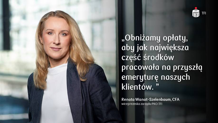 – Oszczędzanie na emeryturę to długoterminowy plan finansowy, często rozpisany na dziesiątki lat. W tak długim horyzoncie nawet pozornie niewielkie różnice w kosztach mają ogromne znaczenie dla końcowego wyniku inwestycji. Obniżamy opłaty, aby jak największa część środków pracowała na przyszłą emeryturę naszych klientów. Cieszymy się też, że efektywność zarządzania i wyniki, jakie wypracowujemy są jednymi z najlepszych na rynku. Zyskało to potwierdzenie w rankingu serwisu Analizy.pl, w którym nasze fundusze dostały najwyższą ocenę w kategorii „efektywność” – podsumowuje Renata Wanat-Szelenbaum, CFA, wiceprezeska zarządu PKO TFI.