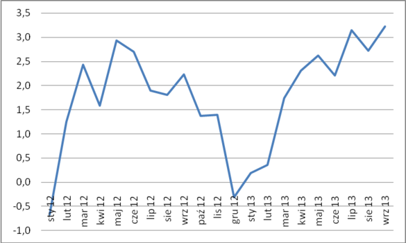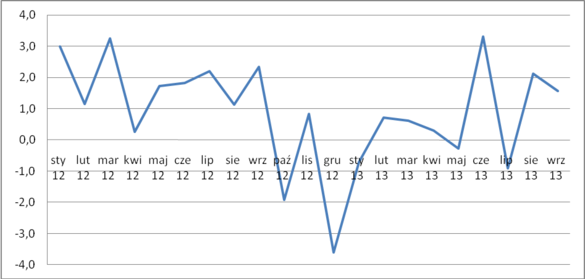 *uwzględniają zmiany kursowe, dane do września 2013. Źródło: NBP.