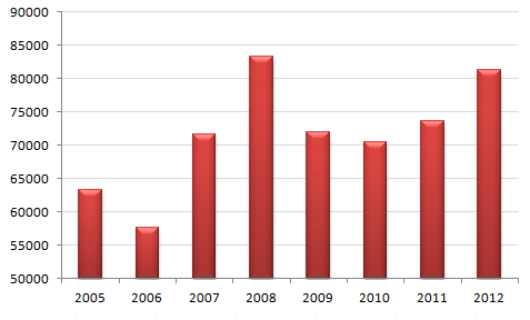 W 2012 r. inwestorzy indywidualni oddali do użytku ponad 81,2 tys. domów jednorodzinnych. W relacji do 2011 r. odnotowano wzrost o 10% w tym zakresie. Wynik z minionego roku był tylko o 2 tysiące domów niższy niż najwyższy od czasów wejścia Polski do Unii Europejskiej rezultat osiągnięty w 2008 r.