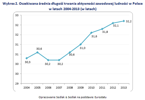 Pomimo że Polacy pracują stosunkowo krótko, wynik z 2013 roku jest najwyższy od lat. Począwszy od 2007 roku wskaźnik oczekiwanej długości trwania aktywności zawodowej nieustannie rośnie. We wspomnianym roku 2007 wynosił on 30,2 roku. W 2013 roku było to o dwa lata więcej.