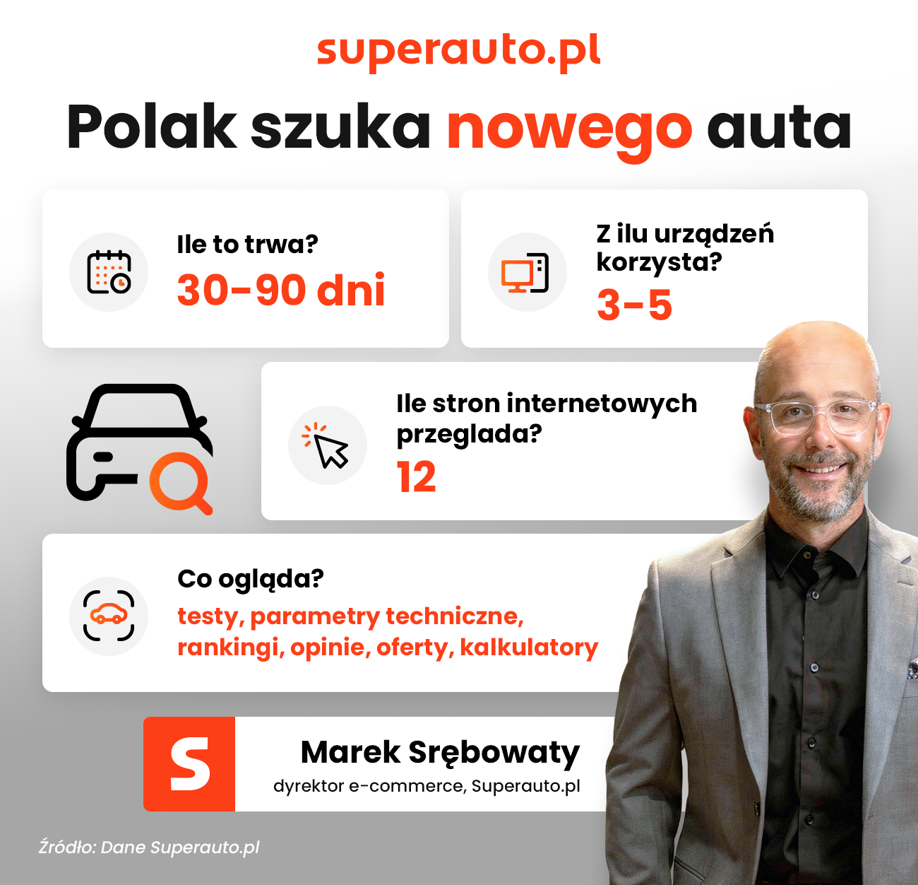 -Rejestracja auta w lutym, może oznaczać, że jego nabywca rozpoczął swoją ścieżkę zakupową, w grudniu, a uwzględniając czas potrzebny na załatwienie formalności związanych z uzyskaniem finansowania, być może nawet w listopadzie. Dotyczy to samochodów dostępnych od ręki, jeśli bowiem nabywca zamówił auto według indywidulanej konfiguracji, na które czeka się kilka miesięcy, mógł rozpocząć swoje przygotowania do transakcji nawet w wakacje – wyjaśnia Marek Śrębowaty, dyrektor e-commerce w Superauto.pl, firmie posiadającej ekosystem portali motoryzacyjnych, które miesięcznie odwiedza 3,5 miliona użytkowników.