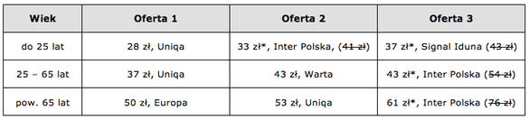 * ceny polis obowiązujące do końca roku w ramach promocji dostępnych na Inseco.pl