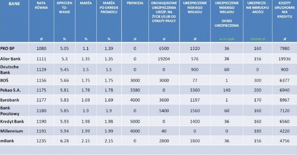 Warto pamiętać, że zgodnie z Rekomendacją S ten rok jest ostatnim, w którym klienci będą mogli liczyć na kredyt mieszkaniowy bez wkładu własnego. Od przyszłego roku Komisja Nadzoru Finansowego prawdopodobnie zabroni ich udzielania. Na razie kredyty na 100 procent wartości nieruchomości są jeszcze dostępne w wielu bankach. Jak wynika z ostatniego rankingu kredytów hipotecznych przygotowanego przez Invigo.pl, oprocentowanie takich pożyczek wynosi od 5 do 6 procent w skali roku.