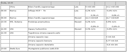 Pierwszy odczyt potwierdzić może utrzymywanie się niskiej presji inflacyjnej, co pozwala Europejskiemu Bankowi Centralnemu pozostawić  stopy procentowe na rekordowo niskich poziomach. Fakt ten nie sprzyja wspólnej walucie. Natomiast impulsem do umocnienia się wspólnej waluty może być publikacja wyższej od oczekiwań nadwyżki styczniowego bilansu handlowego. Odczyt taki jest bardzo prawdopodobny, gdyż słabsze w ostatnich trzech miesiącach euro uatrakcyjniło eksport europejskich produktów przemysłowych. Kolejnym potwierdzeniem tego faktu może być lepszy od prognoz odczyt francuskiej dynamiki produkcji przemysłowej w styczniu 2010 roku. W przypadku Francji chodzi głównie o przemysł motoryzacyjny i lotniczy.