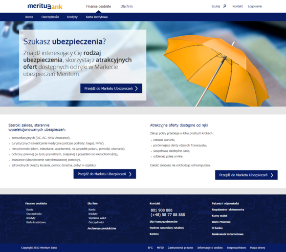 Meritum Bank uruchamia na swojej stronie internetowej Market Ubezpieczeń, w którym można szybko i wygodnie porównać oraz kupić szeroką gamę ubezpieczeń oferowanych przez 10 towarzystw ubezpieczeniowych. Nowa oferta jest dostępna zarówno dla klientów Banku jak i osób, które nie korzystają z jego usług.