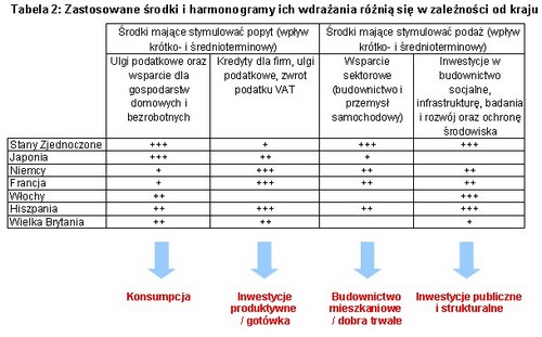 Jednakże nie wszystkie kraje w tym samym stopniu odczują skutki kryzysu. Zapowiedziane dotychczas pakiety mające stymulować gospodarkę stanowią 3,5% globalnego PKB, lecz zastosowane środki różnią się znacznie w zależności od kraju.