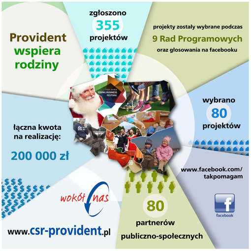 Zakończyła się V edycja programu „Wokół Nas”, organizowanego przez firmę Provident. Rada Programowa wybrała 80 projektów przeciwdziałających społecznemu i finansowemu wykluczeniu – to o 15 więcej niż w IV edycji. Kwota wsparcia w wysokości 200 tys. zł umożliwiła realizację wyróżnionych inicjatyw na terenie całej Polski.