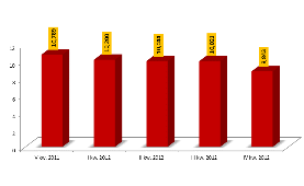 Ostatni kwartał 2012 roku był szóstym kolejnym, w którym odnotowano spadek liczby udzielanych kredytów, łączna ich liczba wyniosła 47 523 nowych umów. Sumaryczna wartość nowych kredytów z IV kwartału wyniosła 8,843 miliarda złotych, czyli o ponad 11% mniej w porównaniu do III kwartału 2012 roku. Był to najniższy kwartalny wynik od I kwartału 2009 roku, kiedy to łączna wartość nowych umów wyniosła 7,609 miliardów złotych.