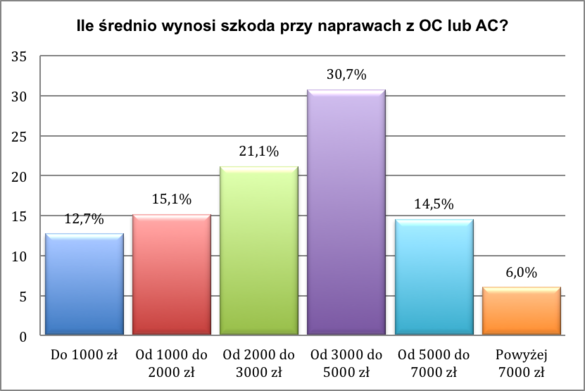 Co ciekawe, kierowcy częściej na prywatne reperacje decydują się w przypadku uszkodzeń blacharskich. Tak naprawiamy aż 32,8% tego typu szkód. Tylko nieco częściej korzystamy w tych przypadkach z rozliczenia z tytułu OC sprawcy (34,15%). Rzadziej naprawa blacharska jest pokrywana z naszego AC (29,7%).