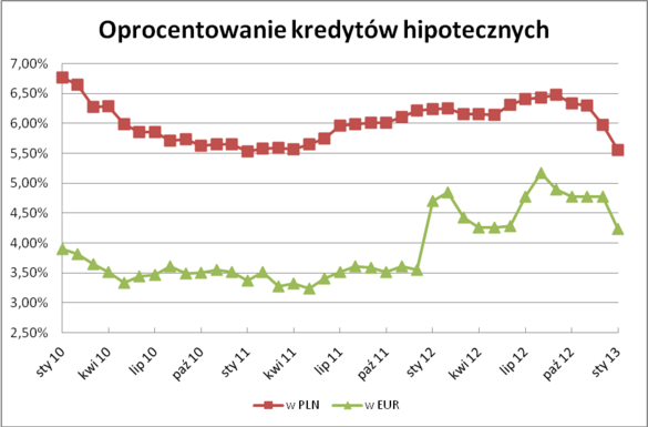 Osobom już spłacającym kredyty hipoteczne rok 2012 przyniósł same dobre informacje. Spadły bowiem raty zarówno kredytów w złotych jak i w euro czy we frankach. W przypadku kredytów w polskiej walucie przyczynił się do tego przede wszystkim spadek oprocentowania. W przypadku kredytów walutowych decydujące było umocnienie się złotego.