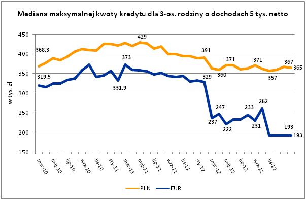 Nieco bardziej skomplikowana jest sytuacja osób, które dopiero zamierzają zaciągną kredyt mieszkaniowy. Z jednej strony spadający WIBOR sprzyja im podwójnie (wpływając na spadek raty kredytowej i jednocześnie wzrost zdolności), ale z drugiej opisany efekt częściowo niwelują podwyżki marż kredytowych. O ile w kwietniu br. przeciętna marża dla kredytu na 300 tys. zł (25% wkładu własnego, 25 lat spłaty) wynosiła ok. 1,2% to dziś zbliża się do 1,5%. Z kolei na poziom zdolności oprócz oprocentowania kredytów (marże i WIBOR) wpływa też polityka poszczególnych banków, której odzwierciedleniem są mechanizmy stosowane w kalkulatorach kredytowych. Dlatego, choć od czerwca stopa WIBOR spadła w większym stopniu niż wzrosła przeciętna marża, średnia zdolność kredytowa minimalnie obniżyła się. Według danych Home Broker, przeciętna 3-osobowa rodzina zarabiająca 5 tys. zł netto może dziś liczyć średnio na 365 tys. zł kredytu w lipcu było to 371 tys. zł).