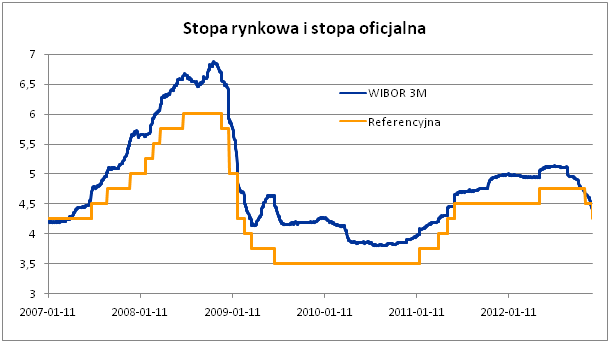 Stopy spadają w teorii, w praktyce z opóźnieniem