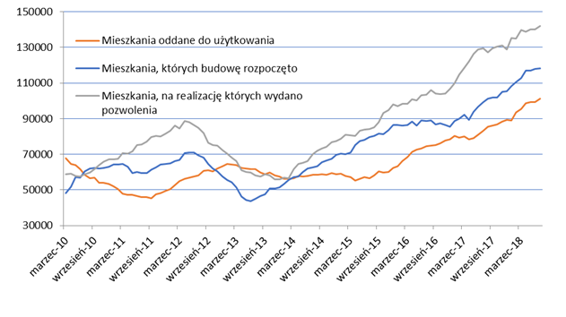 Warto dodać, że 12-miesięczne wyniki statystyk są cały czas „podbijane” przez bieżącą aktywność. Sierpień 2018 r. był dla deweloperów rekordowy jeśli chodzi o liczbę mieszkań oddanych do użytkowania oraz rozpoczętych budów.