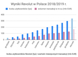 Liczba użytkowników i wartość miesięcznych transakcji Revolut w Polsce