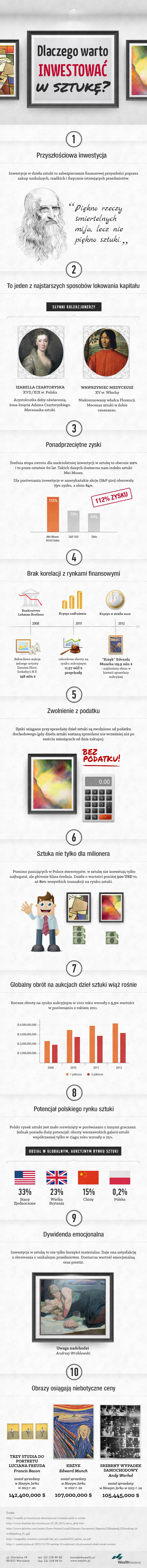 Osiągnięte w 2013 roku rekordy, potwierdzają tylko tezę, jakoby inwestowanie w sztukę było nie tylko opłacalne, ale również coraz bardziej popularne już nie tylko na świecie, ale także w Polsce. Dostępność, oraz szeroki wybór dzieł, a także ich wartości (aukcje zaczynające się od 100 zł), powiększanych regularnie o dzieła sztuki współczesnej powoduje, że na inwestycję w sztukę, kiedyś możliwą tylko przez zamożnych i kolekcjonerów decyduje się zwykły Pan Kowalski. Ale czy mu się to opłaci?