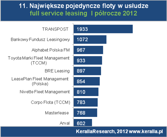 Wynajem długoterminowy oferowało w Polsce, na koniec czerwca 2012 ok. 43 firmy,