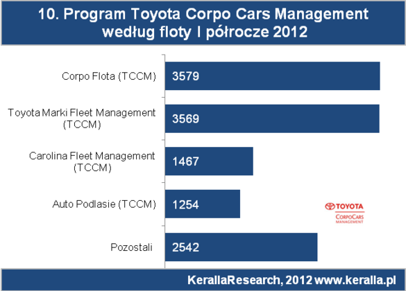 Wśród dealerów Toyoty promujących management flot, najaktywniej działają CorpoFlota (3579), Toyota Marki (3569), Carolina Fleet Management (1467) oraz Auto Podlasie (1254).