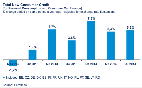 O 5,6% wzrosła w III kwartale 2014 w stosunku do analogicznego okresu 2013 roku sprzedaż kredytów konsumpcyjnych łącznie w krajach, w których organizacje branżowe zrzeszone są w EUROFINAS, europejskiej reprezentacji rynku kredytowego.