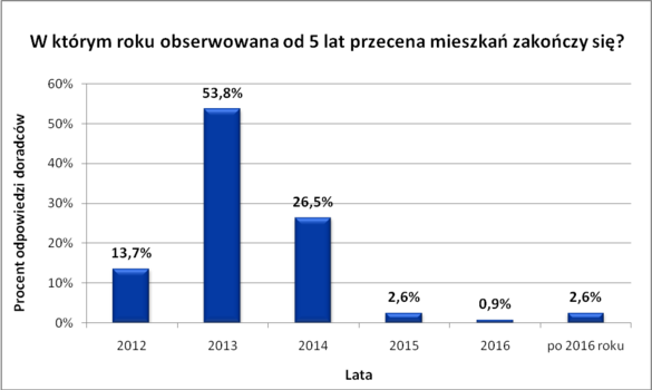 Wielu badanych właśnie w tym czynniku upatruje zmian na rynku nieruchomości w bieżącym roku. Co więcej z ankiety przeprowadzonej pod koniec zeszłego roku wynika, że tzw. „dołek cenowy” może nadejść relatywnie niedługo. Aż dwóch na trzech badanych wskazało rok 2013 jako ten, w którym przecena może mieć swój kres. Kolejne 26,5% ankietowanych wskazało, że z największym prawdopodobieństwem ceny przestaną spadać w rok później. Ziszczenie się tych przewidywań byłoby możliwe jednak nie tylko dzięki dostępowi do tańszego kredytu, ale warunkiem koniecznym jest też poprawa koniunktury.