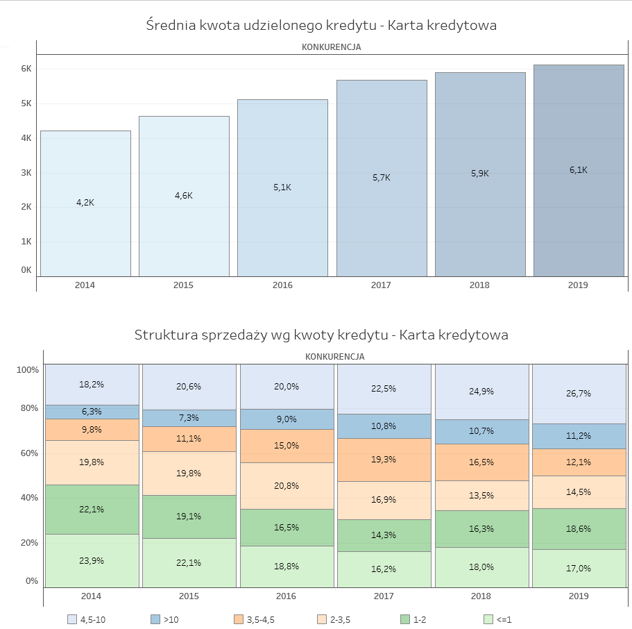 – O ile w 2014 r. udział w strukturze sprzedaży limitów kartowych do 1 tys. zł wynosił 24% to w 2019 r. spadł do 17%. Odwrotną tendencję widzimy w przedziale kwotowym 4,5-10 tys. zł. W 2014 r. miały one 18,2% udział w łącznej sprzedaży to w 2019 r. już 26,7%. Podobną tendencję widzimy w wysokokwotowych limitach pow. 10 tys. zł. W 2014 r. miały one 6,3% udział a już w 2019 r. 11,2% udział. Podstawowym powodem tego zjawiska jest niewątpliwie wzrost dochodów gospodarstw domowych – tłumaczy analityk BIK.
