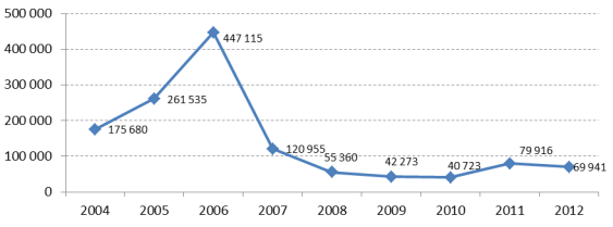 Liczba IKE otwartych w latach 2004-2012 (w szt.)