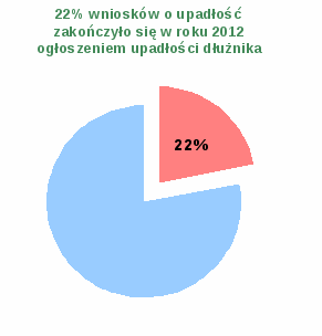 Spośród 4091 złożonych w 2012 r. wniosków o upadłość 730 zakończyło się ogłoszeniem upadłości w celu likwidacji majątku dłużnika, natomiast w 162 przypadkach orzeczono upadłość z możliwością zawarcia układu. Pozostałe blisko 3200 wniosków zostało załatwionych przez sądy w inny sposób. Wniosek o upadłość może złożyć zarówno sam dłużnik w sytuacji swojej niewypłacalności, jak i wierzyciel, wobec którego dłużnik nie reguluje zobowiązań. Prawo upadłościowe precyzyjnie określa przypadki, kiedy może to nastąpić i jakie formalności powinny zostać dopełnione. Sytuacje, kiedy sąd nie orzeka upadłości przedsiębiorstwa spowodowane są różnymi przyczynami, od braków formalnych, przez brak majątku, aż po oddalenie wniosku złożonego w złej wierze.