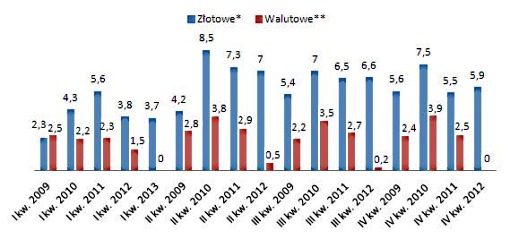 * przyrost zadłużenia wg NBP, ** sprzedaż wg ZBP