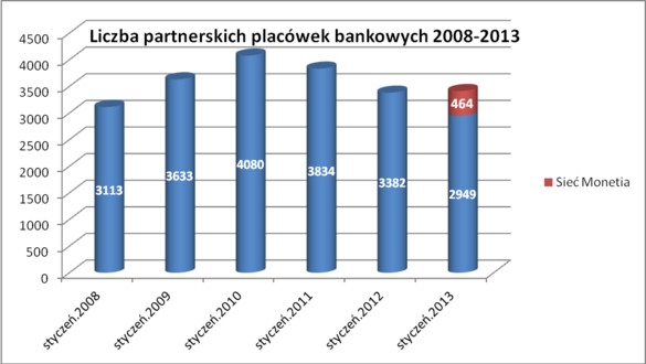Do 31 grudnia 2012 roku na polskim rynku działało 2949 placówek bankowych na licencji – o 433 mniej niż w ubiegłym roku. W naszym tegorocznym zestawieniu nie uwzględniamy jednak liczącej dziś 464 placówek sieci Monetia, która nie należy już do Banku DnB NORD.