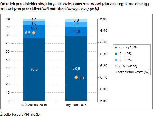 Więcej niż co dziesiąty przedsiębiorca traci na nierzetelności płatniczej klientów i kontrahentów kwoty odpowiadające 10-19% całości ponoszonych przez nich kosztów, a co szesnasty kwoty odpowiadające nawet 20-29% ogółu kosztów. Przeciętny koszt ponoszony przez przedsiębiorców co prawda w obecnym badaniu względem poprzedniego kwartału spadł (z 6,5% do 6,1% ogółu ponoszonych kosztów), to nadal ma to bardzo poważne skutki rynkowe.
