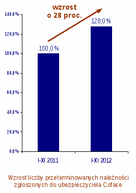 Od IV kwartału 2011 roku Coface notuje wzrost liczby przeterminowanych należności od odbiorców objętych ubezpieczeniem, zgłaszanych przez klientów Coface do windykacji. W okresie od stycznia do listopada 2012 wpłynęło o 28 proc. więcej takich zgłoszeń niż w tym samym okresie 2011 r. Wzrasta także zainteresowanie klientów zewnętrznych, którzy decydują się przekazać niespłacone wierzytelności do biura windykacji.