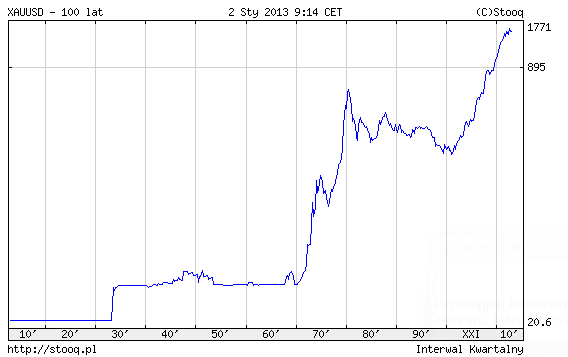 Aż do początku lat 70. XX w. cena złota wyrażana w dolarach mimo presji wzrostowej była praktycznie stała, gdyż rząd USA zobowiązał się do wymiany po ustalonym kursie. W zamian za to amerykańska waluta stała się światowym złotem. Różnica polegała na tym, że USA nie musiały faktycznie wydobywać złota w kopalniach.