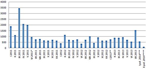 Jednak biorąc pod uwagę wspomniane mechanizmy wynikające z działania „suwaka” (4,4 mld zł w skali roku) oraz chęci ograniczenia przez fundusze udziału akcji w zmodyfikowanym portfelu (wstrzymanie się lub drastyczne ograniczenia zakupów akcji przez kilkanaście miesięcy), popyt na akcje ze strony OFE może być symboliczny. Przy założeniu, że w OFE zostanie jedna czwarta członków, można mieć obawy, że w drugiej połowie 2014 r. fundusze mogą trwale znaleźć się po podażowej stronie rynku, gdyż napływ środków skurczy się tak bardzo, że nie będzie w stanie zrównoważyć działań wynikających z dążenia do ograniczenia udziału akcji w portfelach OFE.